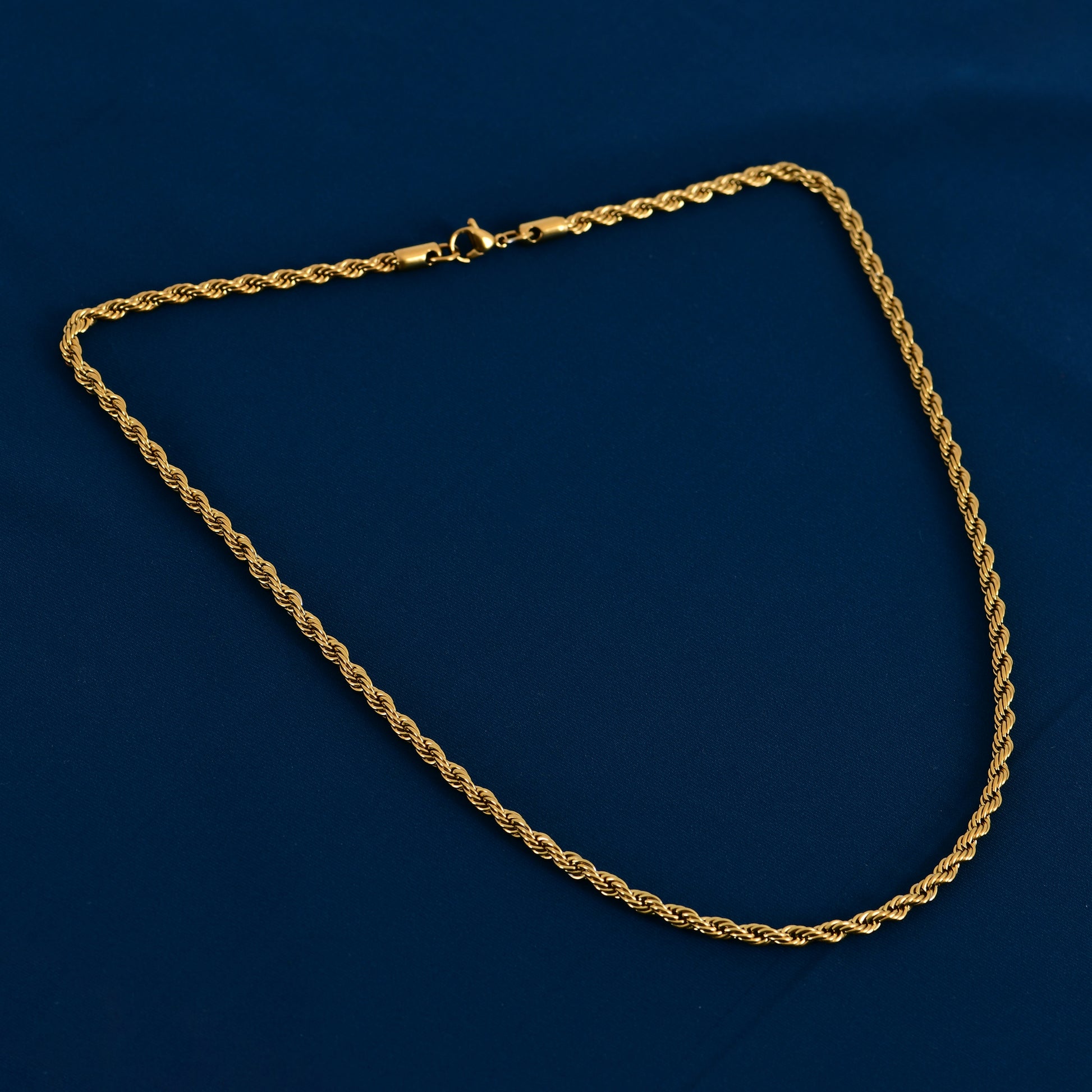 - Made from high-quality stainless steel, this chain features a durable rope-style twisted link pattern that offers a bold yet sophisticated appeal. The gold plating gives it a radiant finish, while the mirror-polished surface reflects premium craftsmanship. Designed to be anti-tarnish, waterproof, and skin-friendly, it maintains its shine even with daily wear.